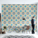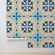 ontwerp, antiek tegel in een naadloos patroon. Witte, gele en blauwe tinten geometrisch patroon.
