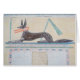 Anubis, Egyptische god van de doden, op de top van een sarcofaag, een schilderij in de vallei van de piramide van Menkaure, het Oude Koninkrijk, c.2613-2494 BC (wandschilderij) in de vallei van de Queens, Thebes, Egypte.
