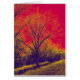Walkway en bomen tegen een verontrustende rode hemel