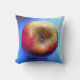 Een kunstontwerp van een appel tegen een blauwe achtergrond.