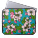 Met de hand getrokken appelbloesems en bijen op de achtergrond van turquoise