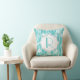 Aqua-blauw, wit bamboe patroon, aangepast decoratief werpen/sleepkussens met een retro bamboe patroon met rietjes en bladeren en jouw tekst-monogram in een grijs lijst. Dit schattige, dunne tropische natuur is ideaal voor een retro/ of moderne, hedendaagse woning.
