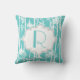 Aqua-blauw, wit bamboonpatroon aangepast kussen