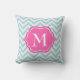 Aqua Blue Chevron Pink White Monogram Design Kussen