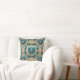 Een tweekleurige aquavlinder rust op een geelbruin medaillon op dit prachtige kussen met worp.