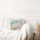 Aqua en perzikglazen zee ontwerpen deze kussen.