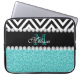 AQUA GLITTER BLACK CHEVRON MONOGRAMMED LAPTOP SLEEVE