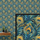 Aqua & gouden pauwenveren behang