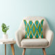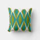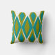 Een geweldige retro-print met een gewaagd diamant geometrisch design in tonnen turkooisblauw en erwten groen, om je moderne stijl uit de middeleeuwse tijd naar je decor te brengen.