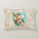 Mooie Victoriaans stijl accentkussen met Aqua Heart Golden Cherub & Harp Bokeh Bling ontwerp - Geweldig voor Valentijnsdag decor!