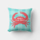 Leuk gepersonaliseerd buiten UV behandeld kussen gedaan in een aqua en wit geruite patroon. Afbeeldingen van een koraal silhouet van een krab, versiert het midden van het kussen, met aangepaste witte tekst. Personaliseer de tekst, voor jezelf of als een geweldig cadeau-idee.
