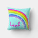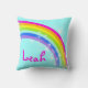 Kleurrijke meisjes aqua green sky blauw met roze tekst regenbooghuiden, kussens, uitsluitend ontworpen door Sarah Trett. Aanpassen met een vierletternaam van uw keuze. Dit voorbeeld leest Leah. Het zou een grote aanvulling zijn op de kamer van het kind of wanneer meerdere kinderen delen.