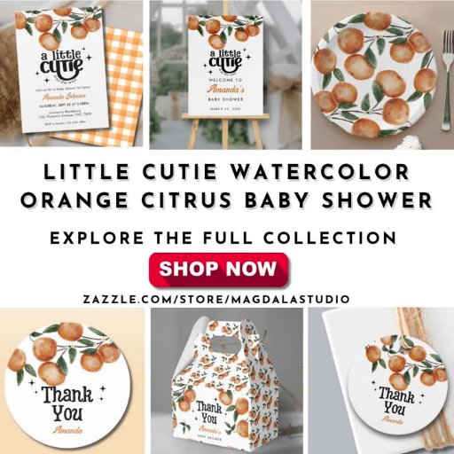 Little Cutie Watercolor Orange Citrus Baby Shower Conçu par Magdaline Annie Martin Oming
