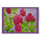 J'aime cette combinaison de couleurs avec les roses rose-foncé et le feuille vert différent sur le fond de lavande.