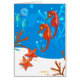 Een grafische aquatische illustratie van een schattig zeepaardje en een grappige zeepaardvis op een aangepast wenskaart. ©2013charmainepaulson