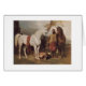 Carte de voeux avec le blanc et les chevaux d'Arabe de baie.