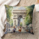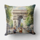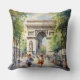 Dit kussen is versierd met een waterverf schilderij van de Arc de Triomphe Paris