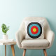 Vierkant kussen met een boogschietdoel aan beide zijden met tien concentrische ringen van goud, rood, blauw, zwart en wit. . Geweldig kussen voor de sportievelingen in je leven.