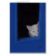 L'archie, un champagne a coloré le chat tigré regardant par la fenêtre vide d'une porte antique.