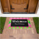 Verhoog uw entree met onze betoverende roze en groene argyle design gepersonaliseerde welkomstmat, met een leuke golfbal op een blauw t-shirt ter vervanging van de O in Welcome. Verkleed je entree met een welkomstmat met golfthema. Het perfecte cadeau voor de fanatieke golfer, of 19e hole golfbaan clubhuis.