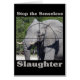 Un gros plan d'un éléphant africain dans les poils de croix avec les mots Stop the Senseless Slaughter (Arrêtez l'abattage insensé qui l'entoure).