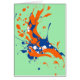 Un design élégant de peinture d'art expressionniste abstrait avec des couleurs orange et bleu contre un arrière - plan vert menthe. Arty et funky, ce design est coloré et vif.