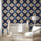 Art Deco Blauw en Goud Bloempatroon Homedecor Behang