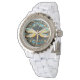 Mooie art deco dameshorloge. Prachtig geometrisch, in goud, blauw, wit, turquoise en zwart retro patroon met een gestileerde Dragonfly.