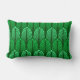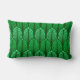 Lumbarkussen in een Kunstdecobedachtpatroon gebaseerd op een gestileerde veer - tintelingen en lichtgroen, op een donkergroene achtergrond met een donkergroene achtergrond