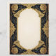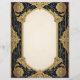 Gouden bloemen en bladeren op een zwarte en groene achtergrond creëer een mooi en lijst voor dit briefpapier. De achterkant is effen, in een complementaire schaduw aan de voorkant. Klassiek en elegant, perfect voor correspondentie, flyers en uitnodigingen.