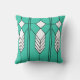 Deze werpkussen hebben een kunstdeco-gekleurd glazen vensterontwerp van diamanten en lijnen in wit, zwart, en turquoise.