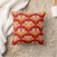 Band kussen in een reproductie van een gestileerde, Art Deco lily, behang - een gradiënt van diepe vlam oranje aan wit, voorzien van mosterdgoud, op een diepe tangerine oranje achtergrond