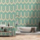 Art Deco Pattern 05 - Blauwgroen op Gebroken Wit Behang