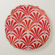 Art Deco-ventilatorpatroon - rood op parelgrijs Rond Kussen