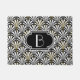 Digitale reproductie van een klassieke, Art Deco-ventilatorpatroondeur met monogram - wit op zwart, geëmailleerd met goud