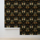 Art Deco Zwart en Goud Bloemen Kever Patroon Behang