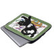Een zwarte en witte kat ligt over papier, verf, verfpallet, sijpelende verf en potloden met hun favoriete muis op canvaspapier in een achtergrond van groen