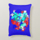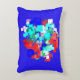 Vet ontwerp met abstracte blokjes in groen, rood, blauw, aqua en wit op een koninklijke blauwe achtergrond. Opvallende toevoeging aan een bank, bed of stoel.