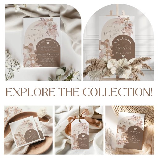 Boho Beige Gender Neutral Teddy Bear Baby ShowerConçu par Anna ArtDesign