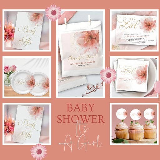 Assiettes En Carton C'est une fille rose or Baby shower Floral moderne