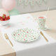 Featuring a beautiful pastel green gingham background dotted with adorable pink and red strawberries and minimal flowers, this plate is perfect for a sweet "Berry First Birthday" celebration.