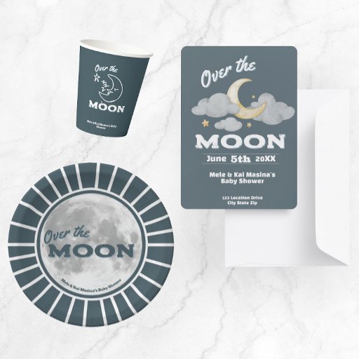 Over. the Moon Blue Baby shower Custom Invitation for Baby on Board Surf thème shower - Créez une invitation de baby shower personnalisée pour les invitations numériques ou imprimés en utilisant un modèle simple et économique.