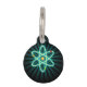 Wetenschappelijk gerelateerd grafisch ontwerp met atoom en elektronen op een zwarte achtergrond.