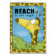 La tête d’une girafe de dessin animé piétine au sommet des arbres et la légende audacieuse dit : "Atteindre de nouveaux sommets". Certaines images sont bordées d'un motif en peau de girafe, d'une bordure noire ou d'aucune bordure. Design original par Christie Black de Creations from the Heart.