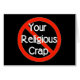 Gardez les masselottes de bible outre de votre porche et hors de votre espace immédiat avec cette barre oblique rouge familière de cercle et les mots "votre merde religieuse." Grand cadeau pour des athées et des libres penseurs.