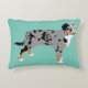 Dit kussen heeft een realistische stijlillustratie van een Australische herdershond tegen een mintgroene achtergrond. De achterkant heeft een coördinatiepatroon van Aussies.