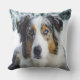 Een mooie Australische Shepard-hond in de wintersneeuw op deze prachtige gooiende kussen.
