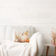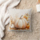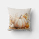Een waterverf stijl arrangement van een grote oranje pompoen en een kleine witte pompoen. Rondom de pompoenen zijn bladeren, gedroogde bloemen en takjes, die de essentie van de herfst oproepen met een minimalistische en elegante touch.