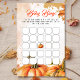 Engage your guests with this delightful Fall-themed 'Baby Bingo' game card, perfect for adding interactive fun to your baby shower! Featuring a charming watercolor design of plump pumpkins and delicate autumn leaves, accented with subtle golden speckles, this game card perfectly blends with your seasonal decor. Guests can fill in squares with gift ideas and mark them off as presents are opened, adding an exciting element to the gift-opening session. It's a fantastic icebreaker and a memorable activity for all attendees. Easily incorporate any specific event details or customized instructions to make this game uniquely yours. Ideal for autumn baby showers, rustic gatherings, or harvest-inspired celebrations, ensuring laughter and joy at your event.