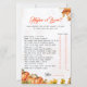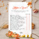 Add an exciting twist to your baby shower with this captivating Fall-themed 'Higher or Lower?' game card! Featuring a beautiful watercolor design of plump pumpkins and delicate autumn leaves, accented with subtle golden speckles, this game card perfectly blends with your seasonal decor. Guests will have a blast guessing whether the answers to fun facts about the parents-to-be are 'Higher' or 'Lower' than the given numbers. It's a fantastic icebreaker and a source of laughter and friendly competition for all attendees. Easily incorporate any specific event details or customized statements to make this game uniquely yours. Ideal for autumn baby showers, rustic gatherings, or harvest-inspired parties, ensuring everyone has a delightful and interactive time.